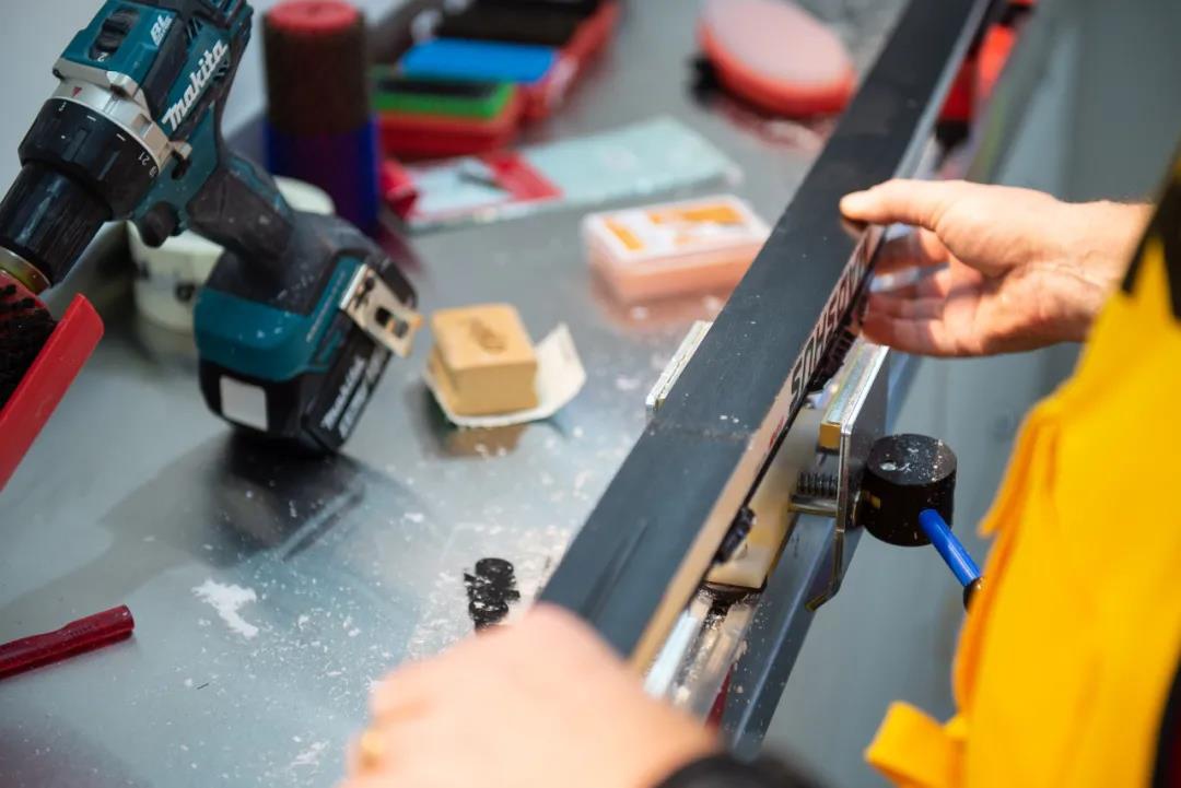 山东省体育产业集团董事长卞志良向记者介绍中国第一台冬奥会雪蜡车