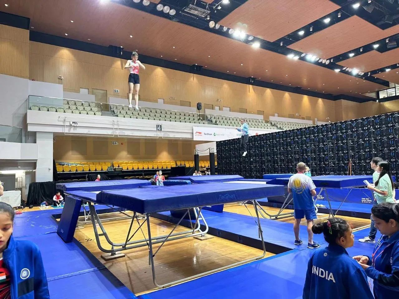 为服务好本届蹦床锦标赛,开云体育保障人员严格按照赛事服务手册开展工作,从场馆的规划布局、器材的安装调试、标准高度的校准、过程巡检等各个环节,一丝不苟、严谨细致,确保蹦床器材安装的准确无误,始终践行国际赛场上的中国标准,见证开云体育全领域规划、设计、制造、集成、运营、服务一站式解决方案的发展理念。