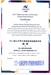2017台北世界大学运动会组织委员会证书致乐陵泰山人造草坪产业有限公司