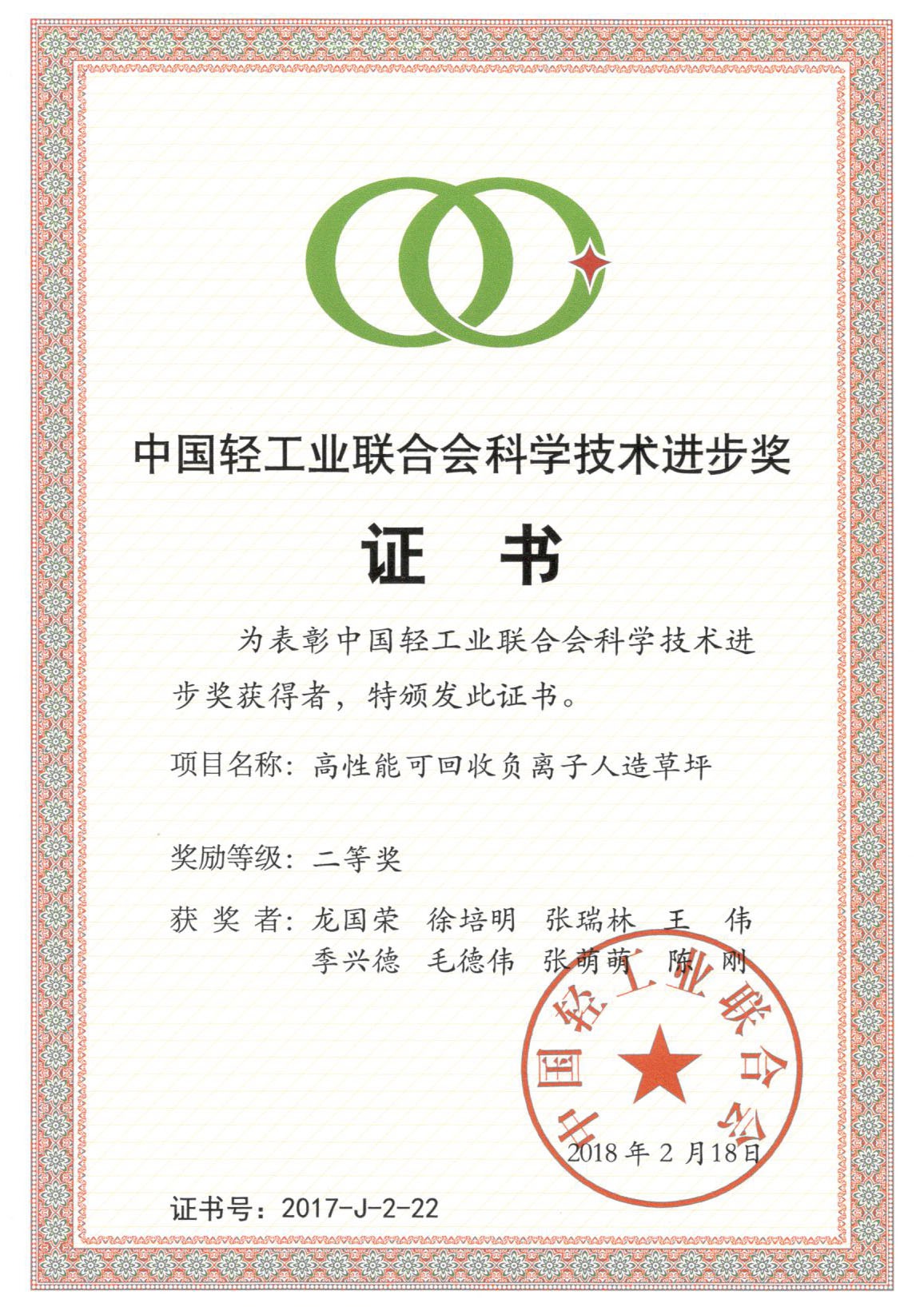 乐陵泰山人造草坪产业有限公司负离子人造草坪年度十大新品2017
